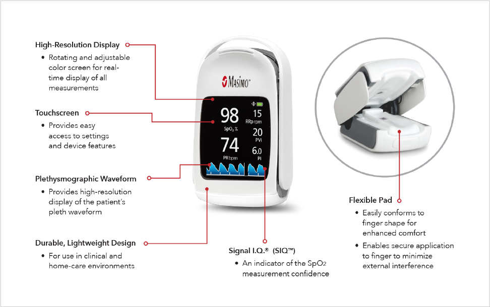 * La tecnología Masimo SET® Measure-through Motion incluye SpO2 y PR.