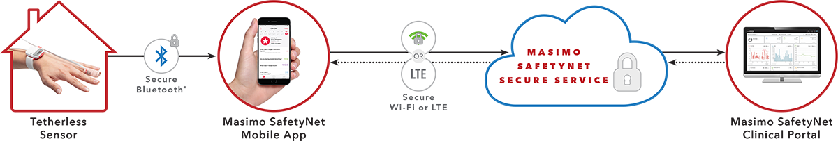 Diseñada para ayudar a los profesionales sanitarios a gestionar la asistencia a los pacientes de manera remota, Masimo SafetyNet constituye una plataforma de gestión de pacientes segura, ampliable y basada en la nube que incorpora mediciones continuas de uso clínico, secuencias de atención médica digital y vigilancia remota de pacientes.